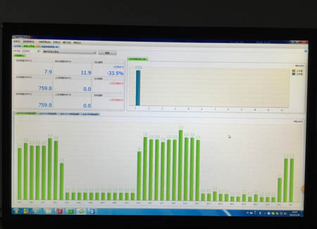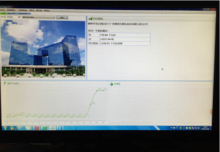 反映建筑物當年用能各分類能耗和折算為標準煤的綜合能耗,界面下方顯示用電和空調(diào)用水的當日逐時用能曲線。