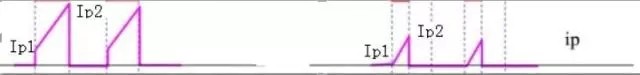 對于上圖是兩種工作模式的初級電感電流波形,我加了兩個參數Ip1和Ip2;Ip1對應最低輸入電流,Ip2對應最高峰值電流,有上邊這兩個我們也就可以算出平均電流Iavg了,Iavg=(Ip1+Ip2)Dmax/2,式中Dmax為最大占空比,如果輸出功率為Pout,電源效率為η,那么