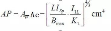 所以上式整理下可得AP=Aw*Ae=(LP*IP2*104/450*ΔB*Ko)4/3cm4,計算出了AP就可以找到合適的磁芯,然后找到Ae再根據式NP=LP*IP/ΔB*Ae。式中LP就是上邊算得初級電感量。