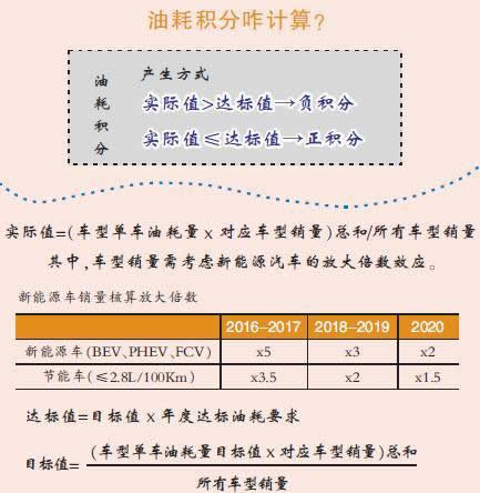 自施行之日起,中國境內(nèi)所有乘用車企業(yè)(包括新能源乘用車和傳統(tǒng)能源乘用車)都會有兩個(gè)年度積分:平均燃料消耗量積分(油耗積分) 和 新能源汽車積分。