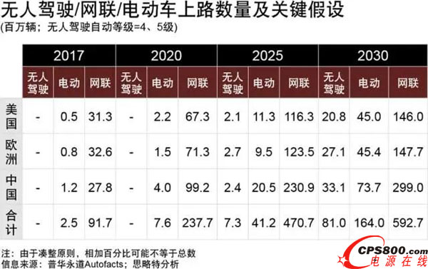 3.在法律和消費(fèi)者的推動(dòng)下,大約從2022年開始,美國/歐洲/中國售出的新車都將是網(wǎng)聯(lián)汽車。2030年,全球網(wǎng)聯(lián)汽車將達(dá)到6億輛左右,中國為3億輛左右。