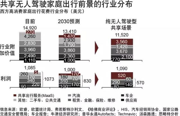 4.在純無人駕駛型共享出行場景下,家庭在出行方面的開支將減少20%,利潤將從急劇轉(zhuǎn)向出行服務(wù)提供商。