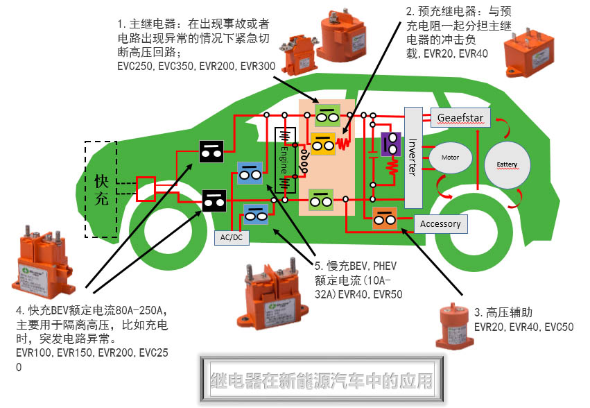 繼電器是一種控制元件,它具有控制系統(又稱輸入回路)和被控制系統(又稱輸出回路);則是一種電路開關并帶保護性質,是新能源汽車核心元件;