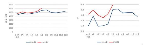 一、全社會用電量增速同比提高,7月當月用電量創歷史新高