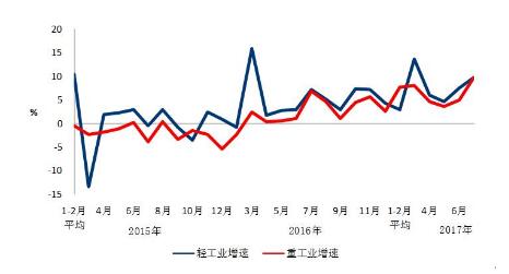 圖2 2015年以來分月輕、重工業用電量增速情況