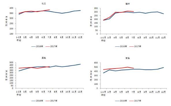 圖4 2016、2017年重點行業分月用電量情況