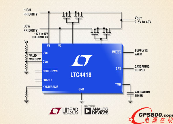 日前,亞德諾半導體 (Analog Devices, Inc.,簡稱 ADI) 旗下凌力爾特公司 (Linear Technology Corporation) 推出適用于 2.5V 至 40V 系統的雙輸入電源優先級排序器 LTC4418。