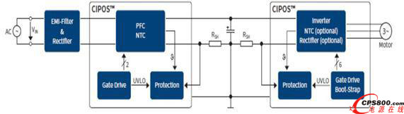 圖示2-大聯(lián)大品佳推出的英飛凌CIPOS™系列智能功率模塊系統(tǒng)架構(gòu)圖