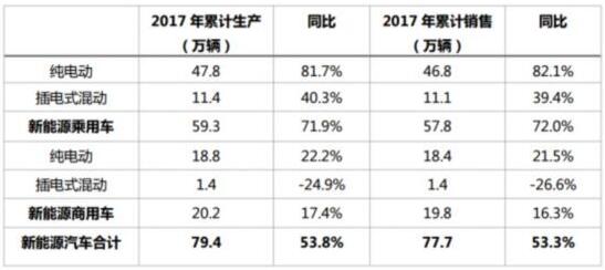 2017年的中國汽車市場以3%的微增長收官。與之形成鮮明對比,新能源汽車全年實現77.7萬輛銷售規模,同比增長高達53.3%。新能源汽車時代正加速向我們走來。