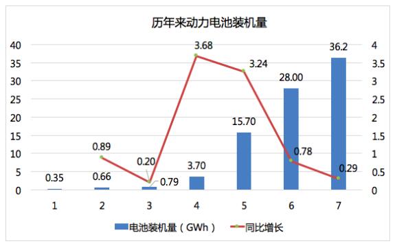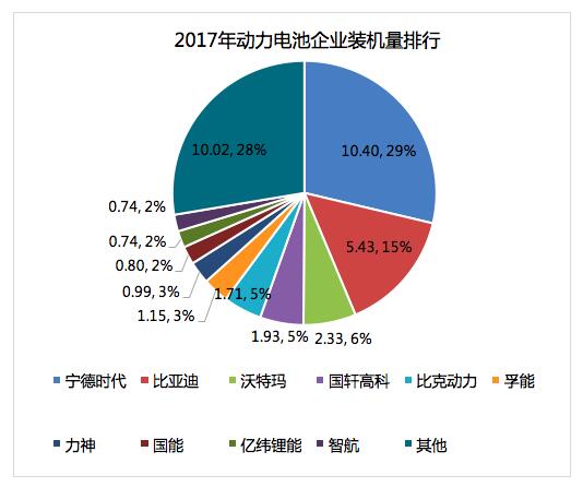 產銷均接近80萬輛,這是我國2017年新能源汽車整體成績。對于新能源汽車的核心零部件,動力電池(單體電芯)的裝機量也是再創新高。數據顯示,2017年我國新能源汽車(EV+PHEV)動力電池裝機總電量約36.24GWh,相比2016年28GWh的數據,同比增長約29.4%。
