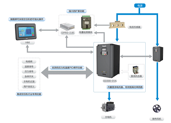 空壓機(jī)變頻控制系統(tǒng)一體機(jī)方案(7.5~90KW)