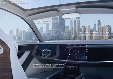 在汽車應(yīng)用中elmos是手勢識別的先驅(qū),同時在該應(yīng)用中elmos處于世界第一的位置,原因之一是該產(chǎn)品是市場上具有最佳抵抗外部環(huán)境光能力以及基于HALIOS®原理的自動系統(tǒng)校準功能。此外,為了簡化系統(tǒng)設(shè)計和傳感器設(shè)計,兩款產(chǎn)品還集成了許多重要功能,這使得它是適用于即插即用的解決方案,E909.21已在知名OEM汽車制造商的各種量產(chǎn)車型系列中使用。