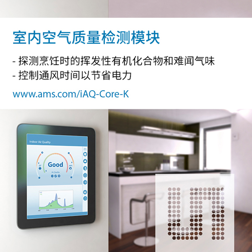 中國(guó),2018年11月13日,全球領(lǐng)先的高性能傳感器解決方案供應(yīng)商艾邁斯半導(dǎo)體(amsAG,瑞士股票交易所股票代碼:AMS)宣布推出新版iAQ-Core模塊,這是一款用于檢測(cè)廚房環(huán)境中的蒸汽、氣味和煙霧的低功耗氣體傳感器。
