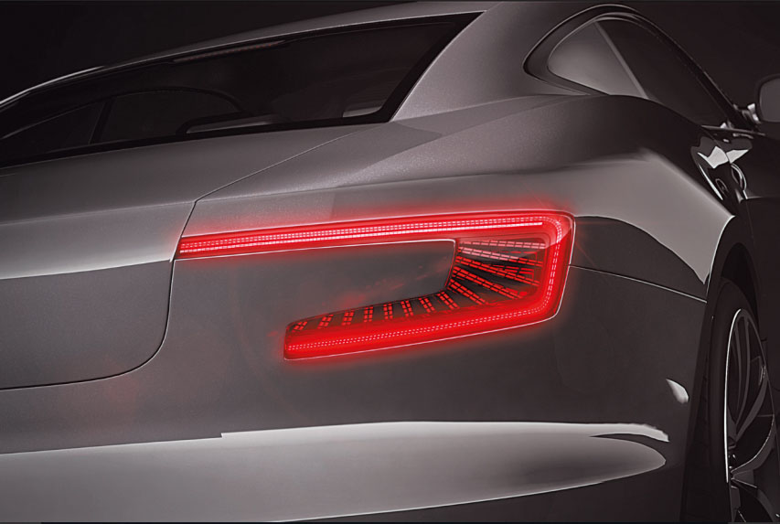 E522.90/91/92/93芯片是elmos推出的用于汽車尾燈應用的LED控制器器件。E522.9x產品系列的每個通道輸出電流為14mA至55mA,并聯工作時單顆芯片最高輸出165mA,即使在惡劣的散熱條件下,這款擁有專利技術的電源管理芯片也可確保在整個工作范圍內LED的恒流特性。該方案設計有外部分流電阻,可以把額外的功耗通過外部電阻耗散掉,將功耗成比例的分配到外部器件和PCB上,避免PCB上出現局部過熱點。這個獨特的概念避免了通過線性控制器的額外電壓跌落。相同特性的E522.8x系列產品具有更高電流(單個通道48-151mA或并聯工作450mA),該系列產品有多個成功應用案例應用于歐洲主流車型以及國內一些車型當中。