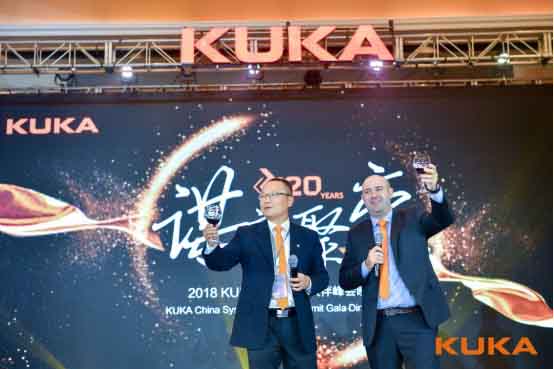▲KUKA一般工業首席銷售官GustavoMoscardo先生(圖右)與KUKA首席執行官王江兵先生舉杯祝酒。