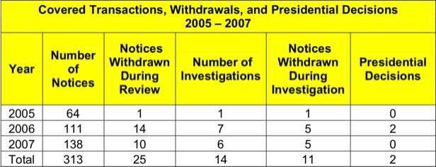 依據(jù)CFIUS提交的2008年報(bào)與2015年報(bào)顯示,在2007、2014與2015的提交審查的案件數(shù)量較高,而被調(diào)查數(shù)量卻是在逐年的增加。