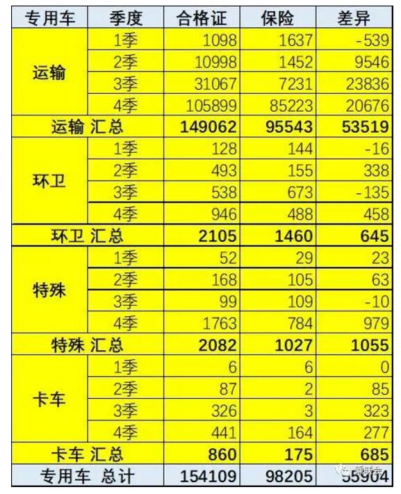 從產銷的結構看,汽車合格證數據與乘聯會批發數據相對比較接近。而專用車數據相對運行不暢,專用車生產15.4萬,上牌9.8萬,產銷的缺口相對較大。