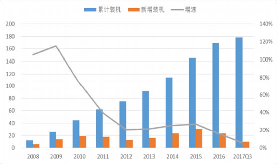 經(jīng)過連續(xù)多年爆發(fā)式增長,我國出現(xiàn)了嚴(yán)重的棄風(fēng)現(xiàn)象,制約風(fēng)電行業(yè)發(fā)展。2012年我國棄風(fēng)率達(dá)17.12%,成為有史以來棄風(fēng)最為嚴(yán)重的一年。2016年7月,國家能源局發(fā)布《關(guān)于建立監(jiān)測預(yù)警機制促進(jìn)風(fēng)電產(chǎn)業(yè)持續(xù)健康發(fā)展的通知》,風(fēng)電投資監(jiān)測預(yù)警機制啟動。由于2016年棄風(fēng)率居高不下,新疆、甘肅、內(nèi)蒙、寧夏、吉林、黑龍江6省被核定為紅色預(yù)警省份。從2017年前三季度并網(wǎng)風(fēng)電裝機和利用小時數(shù)雙雙回升,可以看出,政府對風(fēng)電行業(yè)的運行監(jiān)管和投資預(yù)警控制,有效避免了棄風(fēng)情況的進(jìn)一步惡化。隨著風(fēng)電投資、建設(shè)爆發(fā)式增長階段已經(jīng)過去,未來棄風(fēng)率將會逐步下行。
