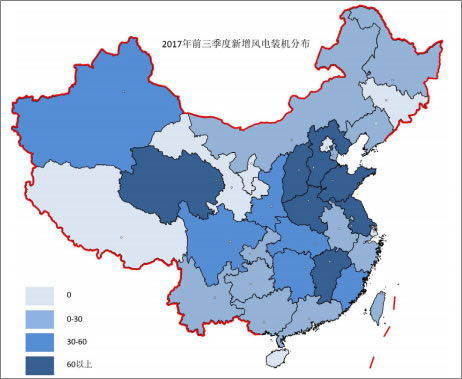 2017年前三季度新增風(fēng)電裝機分布(吉瓦)