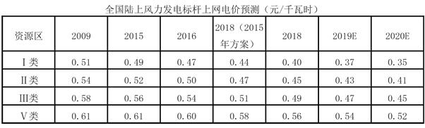 根據(jù)2016年12月國家發(fā)改委宣布的電價調(diào)整方案,4個風(fēng)電資源區(qū)的基準(zhǔn)風(fēng)電電價分別下調(diào)3-7分/千瓦時。在新電價政策下,2018年前通過審批且在2019年底前投運的項目儲備仍將享受2016及2017年的優(yōu)惠電價。