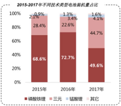 隨著行業(yè)逐步成熟,集中度提升的同時加劇了洗牌力度。龍頭企業(yè)市場份額提升,CATL由2016年的20.6%的份額提升到2017年的29.2%;企業(yè)競爭格局發(fā)生變化,乘用車用電池和三元電池占比明顯提升。