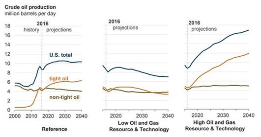 圖為美國原油產量歷史和預期曲線圖(來源:美國能源信息署)