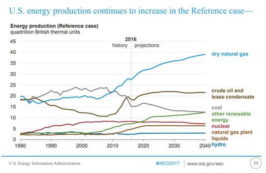 圖為美國能源產量歷史和預期曲線圖(來源:美國能源信息署)