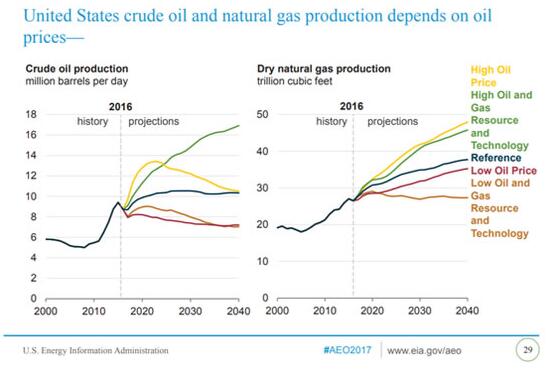 圖為美國原油和天然氣產量與油價關系(來源:美國能源信息署)