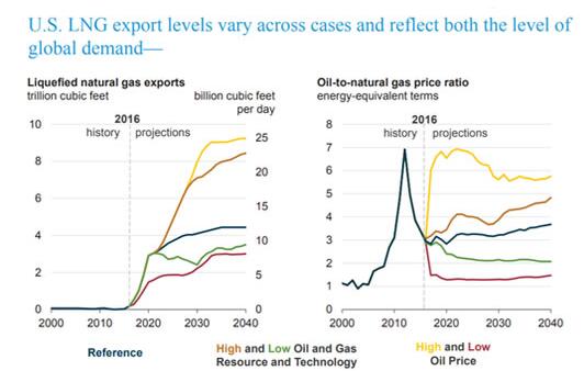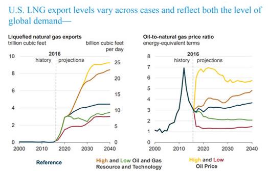 圖為美國液化天然氣出口量歷史數據和預測(來源:美國能源信息署)