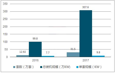 戶用單套規(guī)模擴大,已經(jīng)達到9.8kw/戶,未來有望繼續(xù)提高,直接拉動戶用裝機規(guī)模。2017年,國家電網(wǎng)經(jīng)營區(qū)新增接入居民分布式光伏發(fā)電并網(wǎng)戶數(shù)31.5萬戶,是2016年新增并網(wǎng)戶數(shù)的4.5倍。新增并網(wǎng)容量307.6萬千瓦,同比增長208%。在國網(wǎng)范圍內(nèi),2017年的家用光伏光伏的單套規(guī)模相對于2016年提高了2.1kW,接近10kW。家用光伏單套容量在逐年增加。