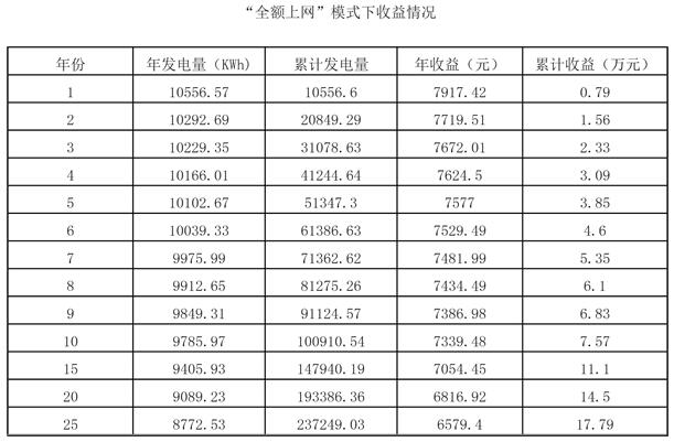 如果用戶選擇“全額上網(wǎng)”的方式并網(wǎng),那么每年的收益就是發(fā)電量*光伏標桿電價。大約在第八年就可以收回投資成本,后面的每一年都是凈收益。