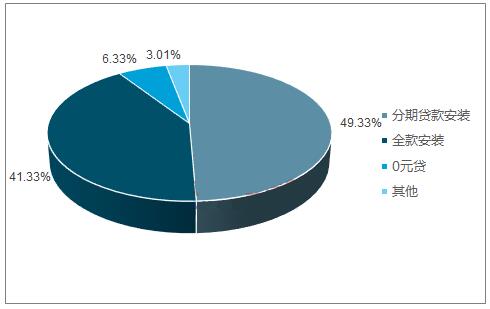 2017年安裝戶用光伏電站選擇的付款方式中,全款安裝比例為41.33%,分期貸款安裝的比例為49.33,另外還有5.33%的用戶是采用“0元貸”的方式安裝。同時近70%的戶用表示,每期的發(fā)電收益可以覆蓋貸款金額。