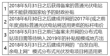 按照《通知》的規(guī)定,2018年5月31日(含)之前并網(wǎng)的分布式光伏發(fā)電項(xiàng)目為納入國(guó)家認(rèn)可的規(guī)模管理范圍(10GW),屬于享受2018年補(bǔ)貼的范圍,而2018年5月31日之后并網(wǎng)的分布式光伏發(fā)電項(xiàng)目不享受2018年國(guó)家光伏補(bǔ)貼,只能等待獲得2019年的光伏補(bǔ)貼指標(biāo)。同時(shí)《通知》鼓勵(lì)各地出臺(tái)政策支持不需要國(guó)家補(bǔ)貼的光伏發(fā)電項(xiàng)目。