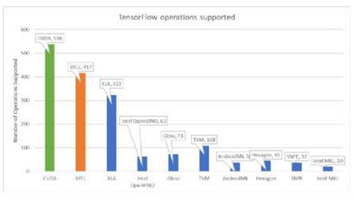 SYCL是一種無(wú)需支付版稅的、可替代CUDA架構(gòu)的開放標(biāo)準(zhǔn)方案,它打破了生態(tài)系統(tǒng)之間的壁壘,從而為開發(fā)人員提供更多自由,去采用標(biāo)準(zhǔn)的C ++來(lái)編寫代碼、去釋放GPU硬件的性能優(yōu)勢(shì)并確保代碼的可移植性。