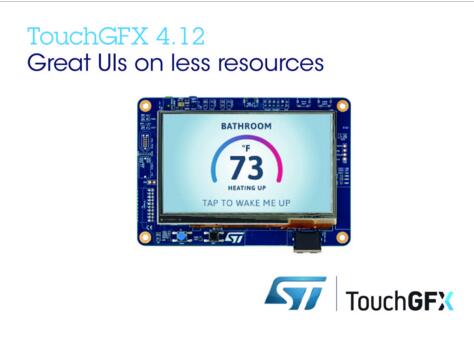 TouchGFX是STM32生態系統中的一套免費軟件工具,包括TouchGFX Designer PC(PC端工具)和TouchGFX Engine(設備端軟件)。TouchGFX Designer PC用于設計和配置豐富多彩的用戶界面,而TouchGFX Engine則運行在終端設備上,使用戶界面實現高性能。最新的4.12版TouchGFX對這兩個軟件都進行了更新。用戶現在可以在單片顯示解決方案上構建先進的用戶界面,無需外部RAM存儲器或閃存,節能特性可以延長電池續航時間,簡化的開發流程有助于加快產品入市。