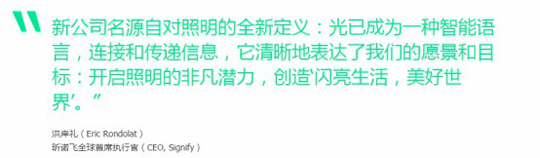 2018年3月,飛利浦照明宣布計劃將名稱改為Signify(昕諾飛)。根據(jù)和皇家飛利浦的授權(quán)協(xié)議,昕諾飛產(chǎn)品將繼續(xù)使用飛利浦品牌。
