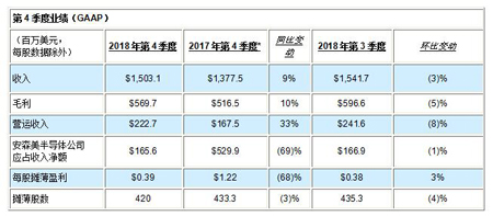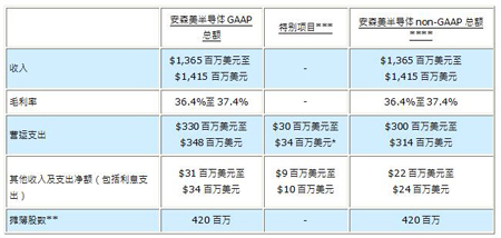 下表概列安森美半導體2019年第1季度的GAAP及non-GAAP展望。