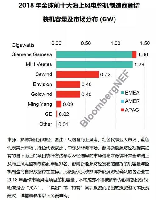 得益于中國海上風(fēng)電市場快速崛起,上海電氣,遠景能源,金風(fēng)科技,及明陽智慧能源分列全球第三至第六大海上風(fēng)電制造商。