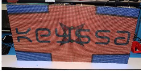 一個(gè)顯示屏箱體(由4個(gè)LED面板組成)。這兩個(gè)箱體相距約4厘米-右側(cè)箱體未連接左側(cè)箱體。