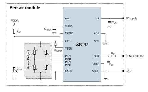 E520.47的所有補償和線性化傳感器數據均可在數字SENT接口輸出端獲得。SENT引腳允許串行I/O通信,實現真正的1線終端配置和校準。另外,I2C接口允許E520.47更快地訪問傳感器,對數據進行診斷,校準和配置。針對此款IC,elmos提供包括實用軟件在內的一套校準工具。
