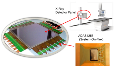 單芯片集成256通道、16位分辨率、22us線路掃描速度等性的ADAS1256 COF(Chip-On-Flex)解決方案也必須一提。由于功耗與噪聲不能同時達到最低的要求,所以功耗模式的切換功能就能使得用戶自行選擇適應當時需求的最佳功耗、噪聲模式,為此該芯片還提供了9種功耗模式。此外,對于病人來說除了關心診斷準確性外,隨著健康意識的加強越來越關心診斷過程的輻射劑量。因為在做各種檢查時,X射線對病人本省也會造成傷害。對于這點,ADAS1256 COF解決方案降低探測器本身的噪聲,所以在X射線劑量很少時,低噪聲的探測器也能夠接收并清晰呈現圖像。ADI最近又推出了新一代更高掃描速度、更低噪聲、更低功耗的新一代解決方案ADAS1258。