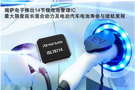 2019年8月8日,日本東京訊-全球領先的半導體解決方案供應商瑞薩電子株式會社(TSE:6723)今日宣布推出第四代鋰離子(Li-ion)電池管理IC,提供高精度及使用壽命。ISL78714提供精準的電池電壓與溫度測量、電池均衡及廣泛的系統診斷,以保護14節鋰電池組,最大限度提升混合動力和電動汽車(HEV/MHEV/PHEV/BEV)的電池壽命和續航里程。