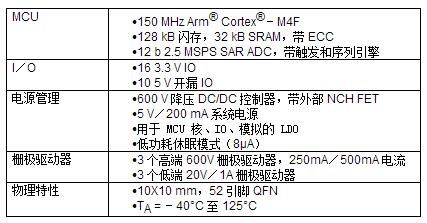 Qorvo PAC5556電源應用控制器®(PAC)采用小巧的52引腳10×10 QFN封裝,提供極高的功率密度。它具有150 MHz Arm®Cortex®-M4F高性能數字處理器和128 kB閃存,集成了一個600V N信道DC/DC降壓控制器和信號調理組件。這大大縮減了無需隔離的高壓系統的物料清單。