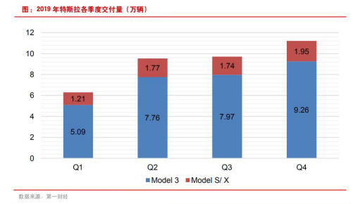 數據顯示,2019年全年,特斯拉實現了約36.75萬輛車的交付,比上年增長50%,超過了特斯拉先前預期交付量區間的下限36萬輛,完成了全年目標。此外,數據還顯示,2019年特斯拉中國地區全年交付達3.4萬輛,次于歐洲的9.6萬輛。隨著特斯拉上海工廠投產,疊加降價刺激需求,預計2020年Model3在中國銷量將達到15萬輛,未來穩態銷量有望達到30萬輛以上,中國市場將成為最重要的增長極。