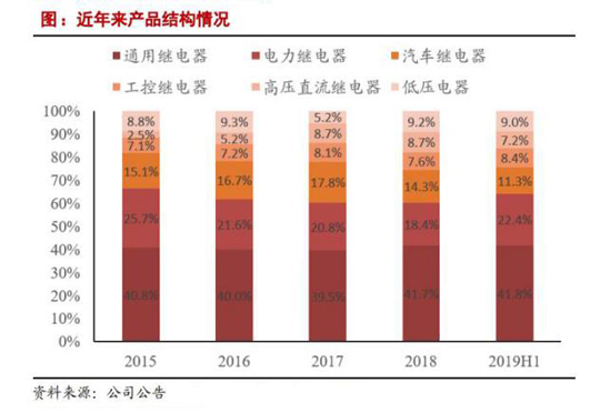 2018年宏發高壓直流繼電器產品營業收入約5.7億元,2019年上半年發貨2.4億元,同比增長55%,而2020年起海外客戶的收入提升將是公司高壓直流繼電器業績快速增長主要助力。目前,宏發已制定了2020年完成銷售額10億元的目標,而分析認為宏發在已有的市占率情況下實現的困難并不大。