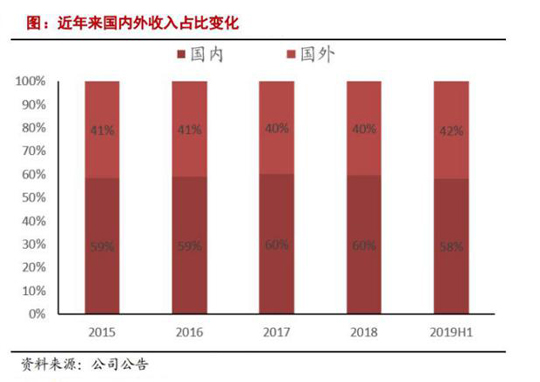 數據顯示,在宏發產品結構方面,功率、汽車和電力繼電器三款產品占營業收入比約80%。近年來整體業務結構較為穩定,而其中用于新能源汽車的高壓直流繼電器從2015年起占比呈現提升勢態。未來宏發高壓直流繼電器產品隨著跨國車企“出海”逐步增多,其相關產品的收入占比以及海外收入在總收入的占比也將隨之提供。