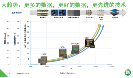 同樣圖像傳感器的分辨率在逐年提升,從過去的200萬像素,500萬,800萬,1200萬,現(xiàn)在達到超過2000萬。二是噪聲導(dǎo)數(shù),相當(dāng)于圖像質(zhì)量,在同樣大小的尺寸下的圖像傳感器逐年隨著像素的增大,圖像質(zhì)量也是不斷地提高。帶寬也是在逐年提高。據(jù)易繼輝指出,安森美在技術(shù)上有非常長時間的積累:全局快門,是在高速運動下使圖像不會有拖影;內(nèi)校正,像素內(nèi)的校正,以前都是在系統(tǒng)里通過軟件校正,現(xiàn)在直接做到硬件里,像素內(nèi)部去做圖像校正;堆棧架構(gòu),以后就不光是兩維空間了,而是三維,堆棧式,兩次堆棧,三次堆棧都有可能實現(xiàn)。以后不光把模擬和數(shù)字信號放在第二層,甚至于人工智能一些算法放在第三層里,整個圖像傳感器就是高智能化的圖像傳感器。