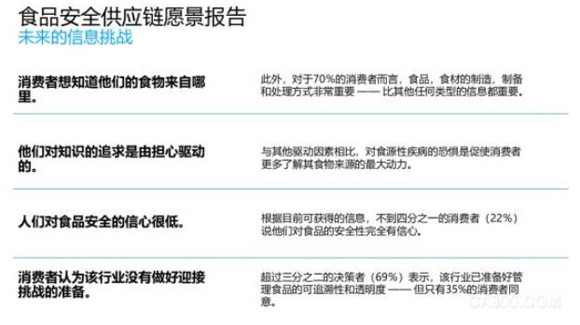 報告顯示,略高于80%的受訪消費者表示,企業在實施食品安全解決方案中應發揮重要作用,并應承擔確保食品安全處理的道德責任。多數受訪消費者(70%)表示,了解食品及其成分的制造、制備和處理方式很重要。報告同時指出,大約69%的受訪決策者認為食品行業已經做好準備,能夠管理食品的追溯和透明度,但只有35%的受訪消費者對此表示認同。