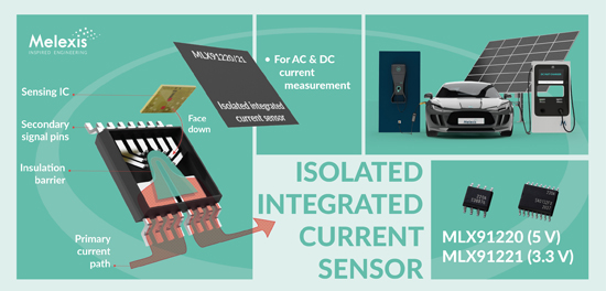 2020年12月8日,比利時泰森德洛-全球微電子工程公司Melexis宣布推出第二代隔離集成電流傳感器IC MLX 91220(5 V)和MLX 91221(3.3 V)。這兩款霍爾效應電流傳感器IC適用于一系列汽車應用和工業應用,例如車載充電器(OBC)、DC/DC轉換器、電源和小型電氣驅動裝置等。該產品具有300 kHz帶寬,適用于多種低于50 A RMS的功率轉換應用。