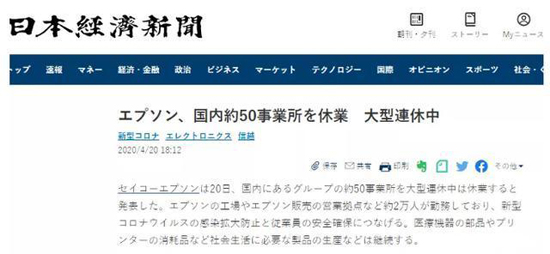 據日經新聞報道,全球晶振龍頭廠精工愛普生 ( Seiko Epson )日前宣布日本境內所有工廠將停工12天、停工時間段為4月25日至5月6日,此次涉及50座工廠,大約20000人休假。